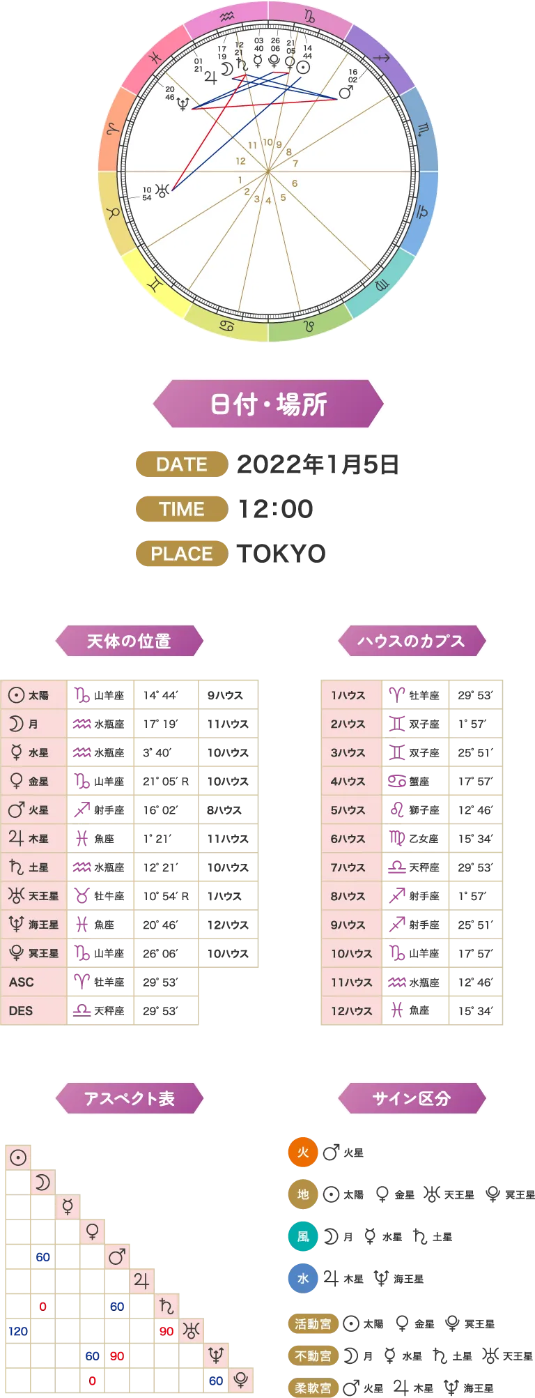 - 生まれた瞬間の宇宙の配置に基づく、完全カスタムメイドの診断